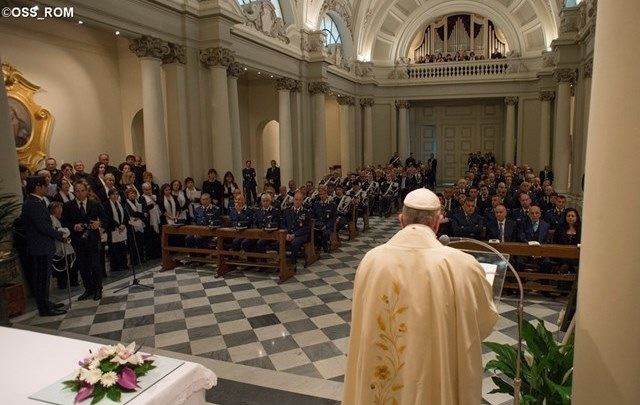 Ferenc pápa a vatikáni csendőrök feladatáról szólva megjegyezte: Nehéz a ti munkátok, mert szembenállásban, vitában és ellenkezésben a helyükre kell tenni a dolgokat, hogy elkerüljük a bűncselekményeket. Imádkozzatok, hogy az Úr megoltalmazzon benneteket a kísértéstől, a korrupció, a gazdagság és a gőg kísértésétől. Minél alázatosabbak vagytok, mint Jézus, annál inkább alázatos lesz a szolgálatotok.