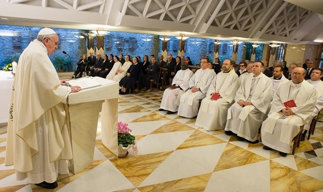 Az evangéliumi szakaszra utalva (Lk 14,12-14) Ferenc pápa rámutatott, nem szép dolog, amikor az egyházi intézményekben, az egyházmegyékben, a plébániákon olyan emberekkel találkozunk, akik saját érdeküket keresik, nem a szolgálatot, nem a szeretetet. Jézus azt mondja nekünk az evangéliumban, hogy ne keressük saját érdekünkett, ne várjunk viszonzásra. „De én ezt és ezt a szívességet tettem neked, te tedd meg nekem ezt”, mondjuk sokszor, hajlamosak vagyunk így beszélni. Ez az evangéliumi példabeszéd arról szól, hogy amikor vacsorát adsz, ne azokat hívd meg, akik azt viszonozni tudják. Ez az ingyenesség. Amikor az egyház összhangban, egységben él, akkor az emberek nem saját érdekeiket keresik, hanem az ingyenesség magatartása jellemzi őket. A jót teszem, nem pedig üzletelek a jóval.