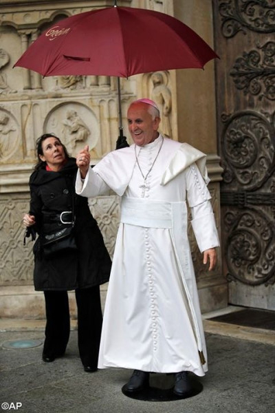 A Szentatya viaszmásán hat hónapon át dolgozott egy tizenöt fős csapat Ponneh Aziminejadi szobrászművész irányításával. Nem ez az első Ferenc pápát ábrázoló viaszszobor, a római panoptikumban már áll egy hasonló alkotás.
