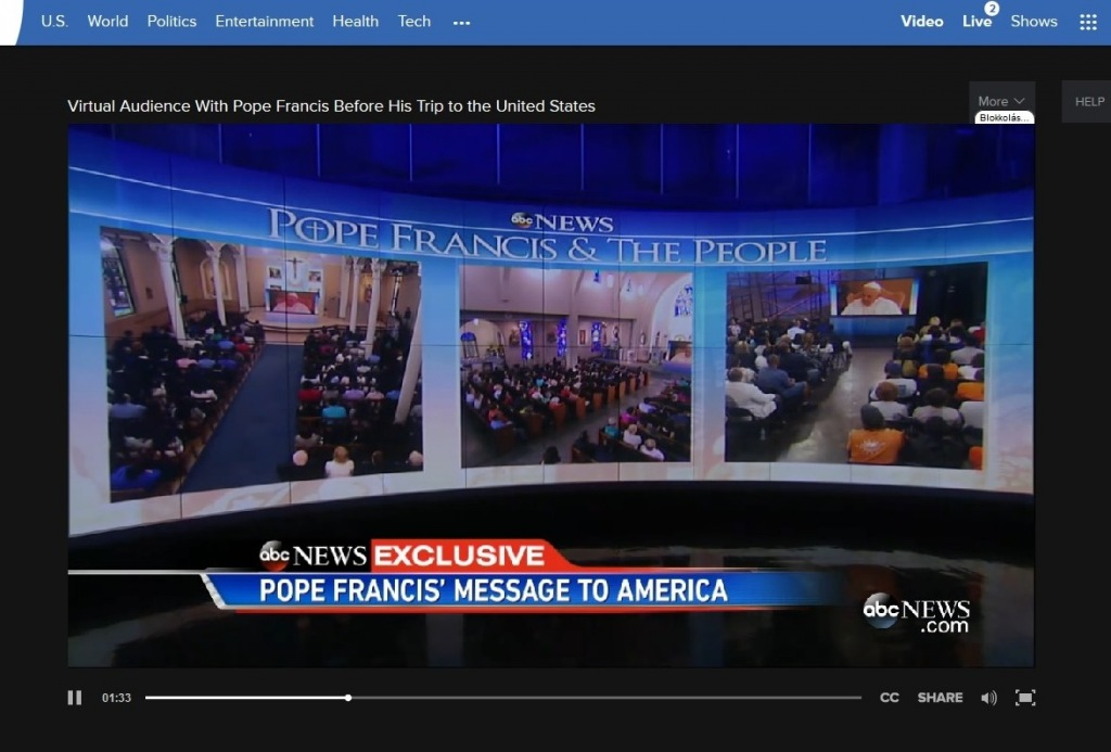 Magyar idő szerint szeptember 5-én hajnal 4-kor kerül adásba az ABC 20/20 című műsora, mely ezúttal Ferenc pápáról szól Ferenc pápa és az emberek címmel.