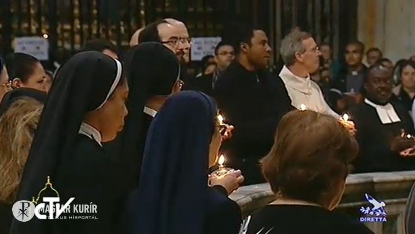 Mindnyájatokra, akik részt vesztek az imavirrasztáson a Santa Maria Maggiore-bazilikában, és valamennyi megszentelt férfira és nőre szívből adom áldásomat, és kérlek titeket, hogy imádkozzatok értem.