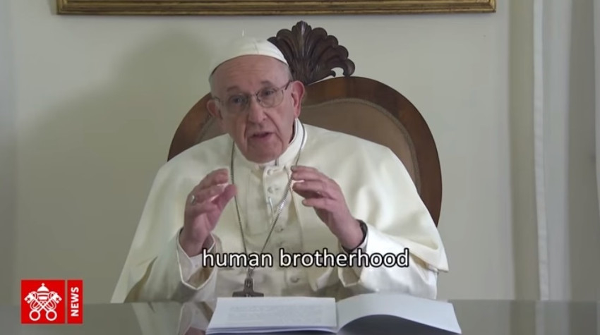 Ferenc pápa köszönetet mond Mohamed Zájed bin Ál Nahján sejknek, amiért meghívta az emberi testvériség témájával foglalkozó vallásközi találkozóra. Háláját fejezi ki az Egyesült Arab Emírségeknek a kiváló együttműködésért, a nagylelkű vendéglátásért és a testvéri fogadtatásért, amelyet látogatása alkalmából nyújtanak. Köszönetet mond továbbá barátjának és kedves testvérének, a kairói al-Azhar Egyetem főimámjának, illetve mindazoknak, akik részt vettek a találkozó előkészítésében bátorságukért és eltökélt szándékukért, hogy bebizonyítsák: az Istenben való hit egyesít, nem pedig elválaszt; közelít minket egymáshoz különbözőségünk ellenére is, távol tartja az ellenségeskedést és az ellenszenvet.