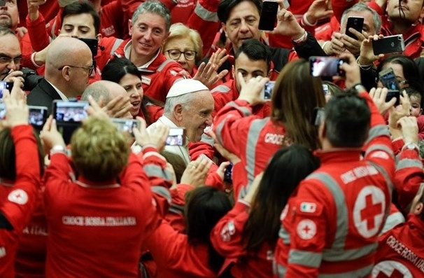 A Vöröskereszt tagjait a Szentatya úgy jellemezte, igazi próféták, akik képesek felébreszteni a közönyös világot, pofozgatva a társadalmi önzést szavakkal és tanúságtétellel.