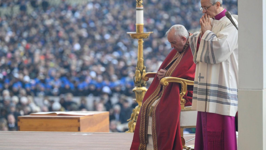 Ahogyan az evangéliumi asszonyok, mi is úgy vagyunk itt a hála illatszereivel és a remény kenetével, hogy még egyszer megmutassuk neki a szeretetet, amely nem vész el; ugyanazzal a kenettel, bölcsességgel, kifinomultsággal és odaadással akarjuk ezt tenni, mint amelyet ő tudott kiterjeszteni az évek során. Együtt akarjuk mondani: „Atyánk, kezedbe ajánljuk az ő lelkét.”