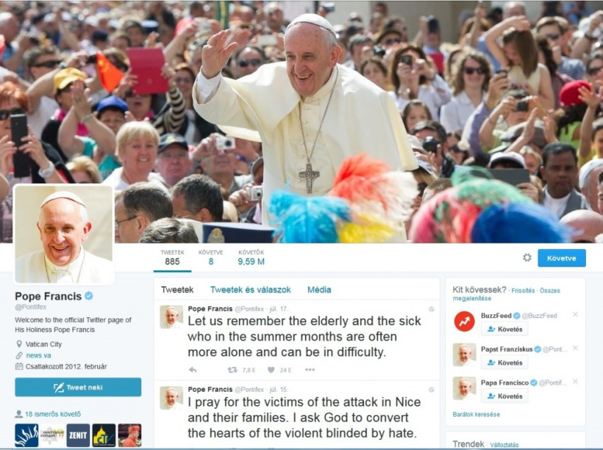 A Szentatya Twitter-követőinek száma május 18-án haladta meg a 29 milliót; 2016 elején 26 millióan követték.