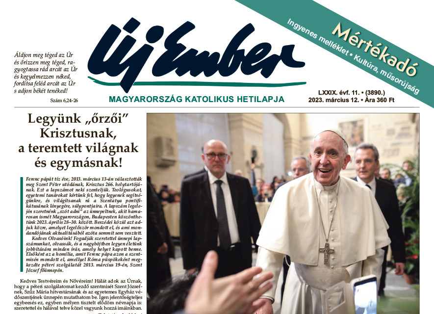 Az Új Ember vezércikkében a Szentatya beszédei közül azt adjuk közre, amelyet legelőször mondott el, és amely mondandójának aktualitásából azóta semmit sem vesztett. Ferenc pápa homíliáját azon a szentmisén mondta el, amellyel Róma püspökeként megkezdte péteri szolgálatát 2013. március 19-én, Szent József főünnepén. „A gondoskodás, az őrzés jóságot kíván, megkívánja, hogy gyengédséggel éljük meg. Az evangéliumokban Szent József erős, bátor, keményen dolgozó emberként jelenik meg, de lelkében nagy gyengédség él, mely nem a gyengék erénye, épp ellenkezőleg, erőslelkűségről, odafigyelésre, együttérzésre, mások iránti valódi nyitottságra, szeretetre való képességről árulkodik.