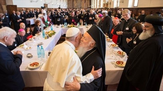 Az ebédet követően a Szentatya külön-külön találkozott Bartholomaiosz konstantinápolyi pátriárkával, II. Ignác Efrémmel, Antióchia szír ortodox pátriárkájával, Justin Welby anglikán prímással, Zygmunt Bauman lengyel szociológus-filozófussal, az indonéz Din Syamsuddin professzorral, aki az Ulémák Tanácsának elnöke, valamint David Rosen ír főrabbival.