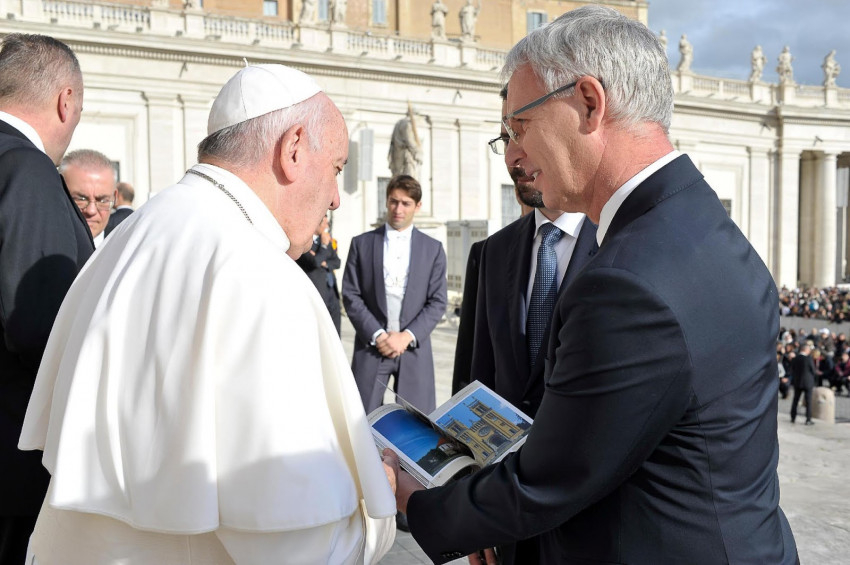 Soltész Miklós az audienciát követően személyesen is találkozott a Szentatyával, akinek egy, a Magyarország Kormánya támogatásával megújult templomokat bemutató kiadványt adott át. Az államtitkár a pápa ázsiai útján elmondott, a béketeremtés fontosságát hangsúlyozó beszédére utalva elmondta: a magyar kormány azzal tud hozzájárulni a szeretet és a béke civilizációjának építéséhez, ha a közösségeket támogatja. Soltész Miklós hangsúlyozta, hogy a kormány a nemzet szellemi és lelki megújulása szempontjából fontosnak tartja a templomok felújítását, valamint az egyházi közfeladat-ellátást és a gyermeket nevelő családok támogatását. Ennek a politikának már látszanak a gyümölcsei, hiszen az elmúlt években Magyarországon nőtt a házasságkötések száma, az abortuszoké és a válásoké viszont jelentősen csökkent – mondta az államtitkár.
