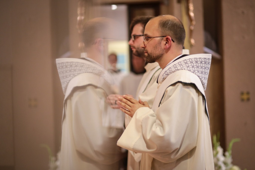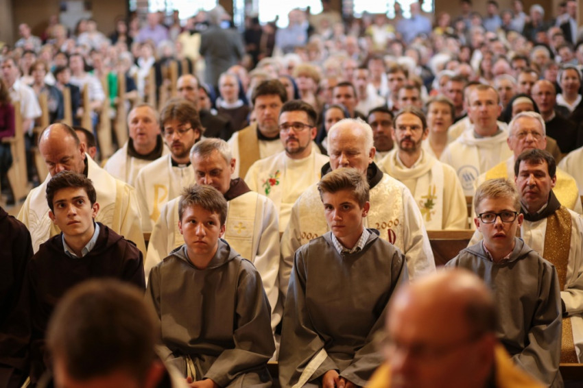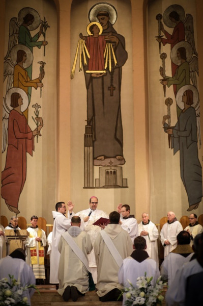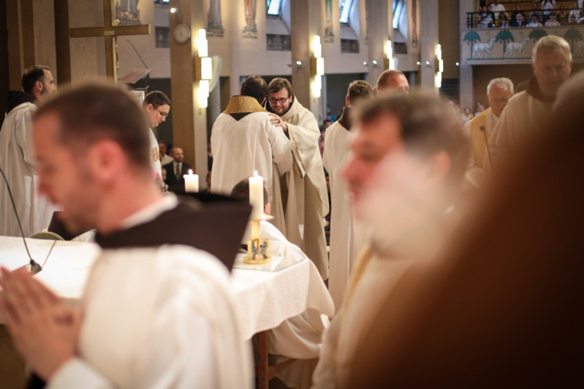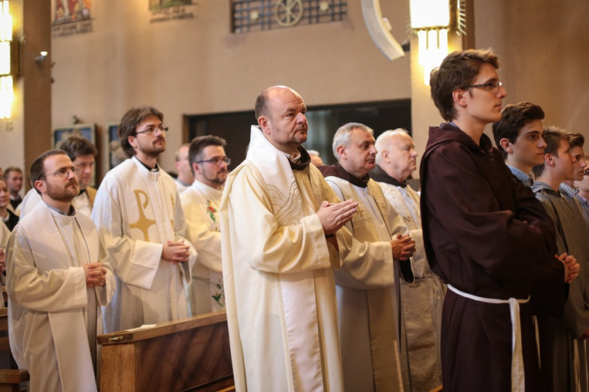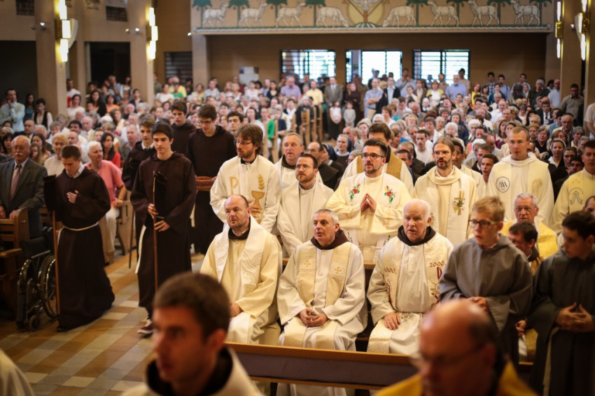 A templomba lépő legerősebb benyomása az, hogy az egész közösség – a pasarétieké és a ferencesek nagy családjáé egyaránt, a női szerzetesrendeket is beleértve – ünnepelni akar, átélni a nagy pillanatot; ott áll a szentelendők mögött, és velük együtt álmélkodik az isteni gondviselés titkain.