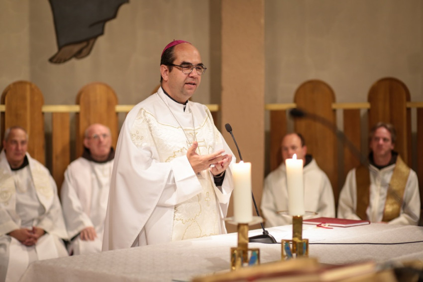 Krisztián jelmondata ez: „…kezébe vett(e), megáldott(a), megtört(e)…”, Gábrielé: „A te arcodat keresem, Uram!” Maga Jézus vesz benneteket a kezébe; benneteket, Isten képmásait, aki az ember – mondja a püspök.