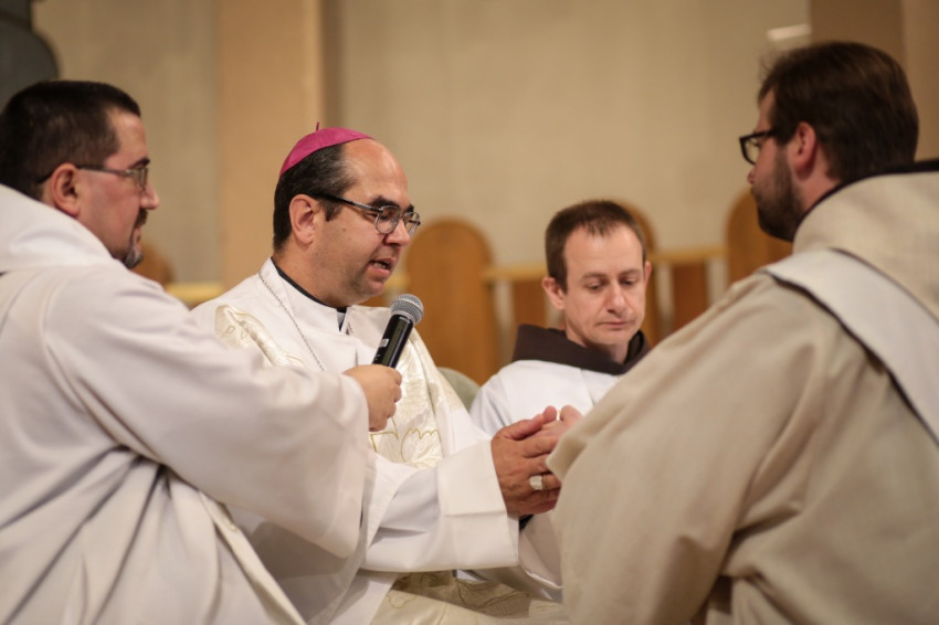 Székely János is a jeremiási szavakból indul ki a prédikációjában, utalva az eredeti szöveg nyelvi finomságára, amely szerint az Úr szava megtörténik a prófétával, vagyis az nemcsak szó, hanem izzó, lángoló valóság. Hogyan történt meg az Úr szava Gábriel és Krisztián életében? Gábriel Nagykanizsán, az alsóvárosi templomban a gyerekkórus tagja volt, és eleven emléke az első letérdelés átváltoztatáskor: a felismerés öröme, hogy nagy titok részese lehet. Krisztiánnak egyszer éppen nagypénteken volt műtéte, aztán húsvétvasárnap mehetett haza a kórházból, ministránsvezető volt Pestújhelyen, és egy Emmausz-kurzusnak is jelentős szerepe volt a hivatásbeli döntésében, a műszaki tanulmányok után a teológia felé fordulásában.