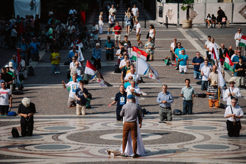 Ez alkalommal is párhuzamosan számos helyen imádkoztak magyar férfi testvérek térdelve: a budai Várban a Kapisztrán téren, Kaposváron, Szentendrén, Nyíregyházán, Mohácson és Kecskeméten, Diósdon, Pécsett, Salgótarjánban, illetve Csíksomlyón és a felvidéki Nagytárkányon, valamint, új helyszínként Szolnokon és Gyergyószentmiklóson. Uttóbbi központi terén Hölgyes Pál Zsolt, a Szent Miklós-templom főesperes-plébánosa és Jánossi Imre, a Szent István király ereklyéinek átvitele templom plébánosa hívta az Oltáriszentség jelenlétében térden állva mondott rózsafüzér imára a férfiakat, hagyományteremtő szándékkal.