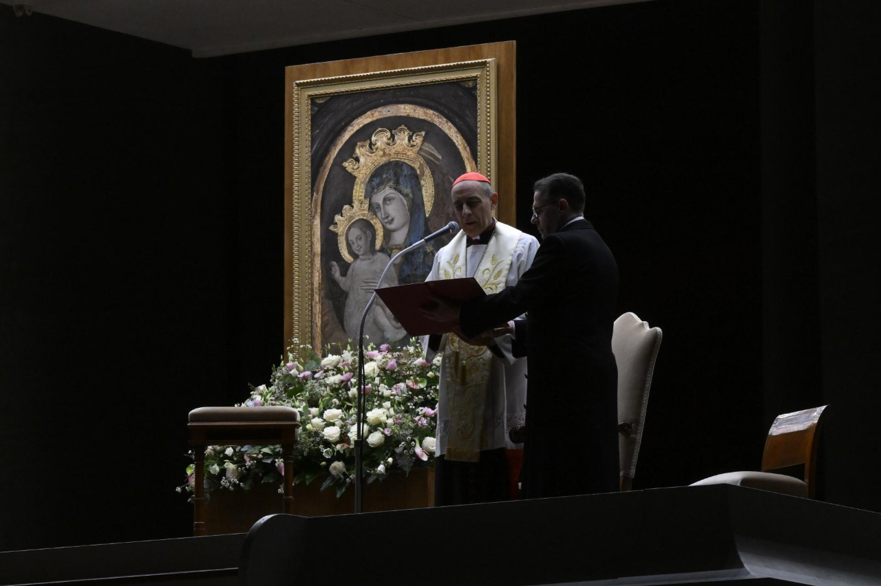 – erre emlékeztetett Víctor Manuel Fernández bíboros, a Hittani Dikasztérium prefektusa, amikor a Szentatya egészségéért tartott Mária-imát vezette az Egyház Anyja tekintete jelenlétében, akinek ikonja ezen az estén is őrködött az imára egybegyűltek felett.