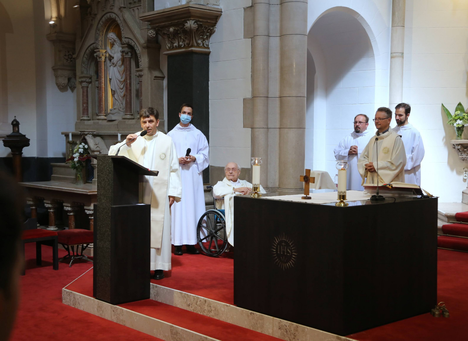A szentmise kezdetén Vízi Elemér kifejezte örömét, hogy e jeles napon, Urunk színeváltozásának ünnepén együtt ünnepelhetik Szabó Feri atyát pappá szentelésének hatvanadik évfordulóján. A hazai jezsuiták provinciálisa emlékeztetett az ünnepelt kiemelkedő intellektuális szolgálatára, amit a Vatikáni Rádió magyar adásának élén végzett huszonöt éven keresztül, később pedig a Távlatok főszerkesztőjeként, könyvek, versek szerzőjeként. Hálaadás ez a szentmise mindezekért Istennek.