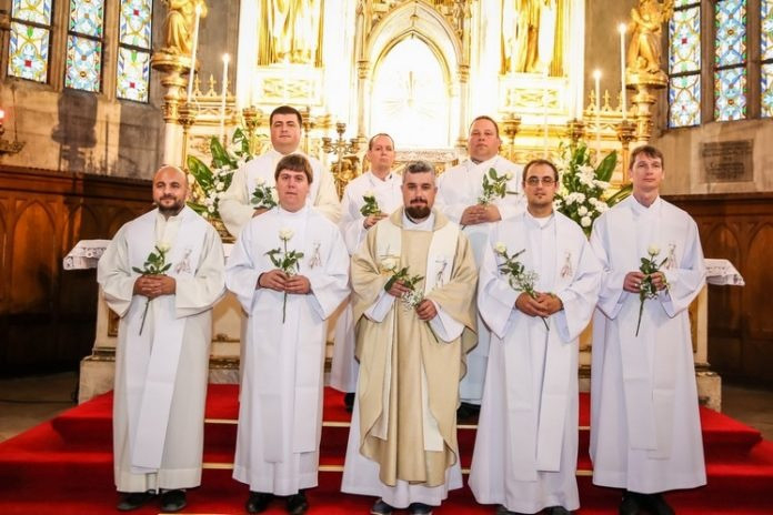 Veres Stelian, Miklós Claudiu SJ, Málnási Demeter, Csüdör Imre, Kovács Zsolt, Papp Márton, Hiticaș Valentin Macedon és Török Zsolt ünnepelt közösen a Kolozsváron celebrált jubileumi szentmisén.