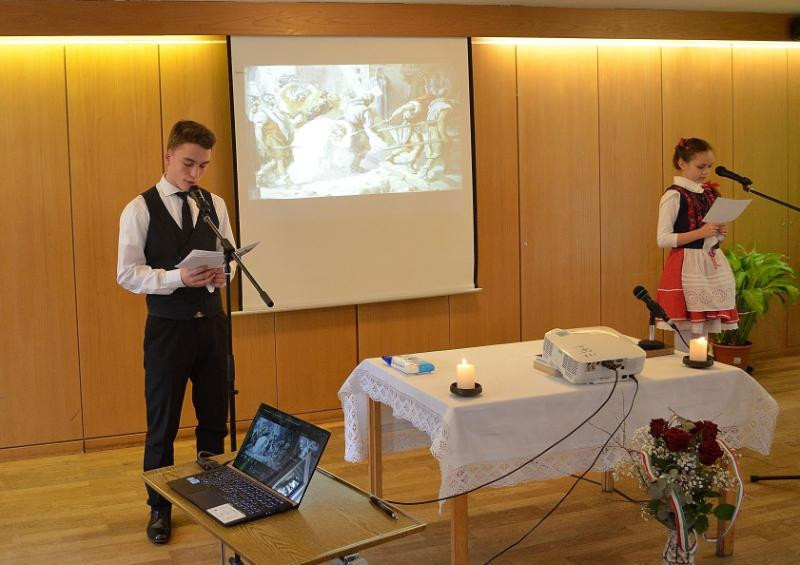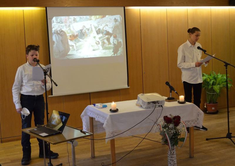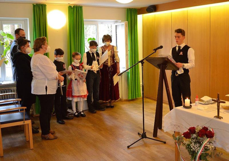 A szertartást követő megemlékezésen – az egyházközséghez tartozó fiatalok közreműködésével – felidézték a 173 évvel ezelőtti történelmi eseményeket és a márciusi ifjak hősiességét. Elhangzott Petőfi Sándor Nemzeti dal és Feltámadott a tenger című költeménye.