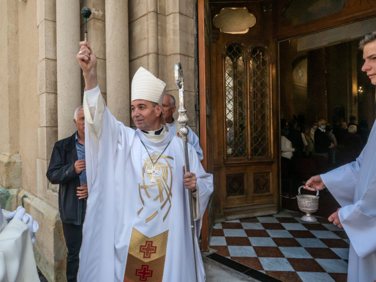 Szentháromság ünnepén Isten misztériumát ünnepeljük, aki Atya, Fiú és Szentlélek – mondta a szentmise elején Udvardy György. – Ugyanígy az ember misztériumát, aki teremtetett, bűnbe esett, de megváltott és élettel ajándékozott. Isten és ember kapcsolatát is ünnepeljük. Ezért külön öröm, hogy bár húsvét éjszakáján, amikor az Egyház életre szüli gyermekeit, nem tudtuk ünnepelni azokat a testvéreinket, akik arra készültek, hogy a beavató szentségekben részesedjenek és e misztérium részesei lehessenek, most ezen a szép ünnepen meg tudjuk tenni. Növekszik az Egyház, él az Egyház, szentül az ember, és hisszük, reméljük, hogy életünk által dicsőítjük a Szentháromságot.
