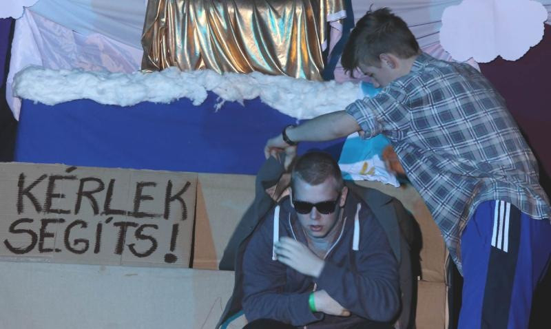 Ezután a püspök atya a mai világot a Maradj talpon televíziós játékhoz hasonlította, amelynek szabálya szerint aki nem tudja rövid időn belül megválaszolni a feltett kérdést, az alatt megnyílik a föld. Ha kérünk, és nem kapunk segítséget, vagy nem a mi igényeinknek megfelelő viselkedéssel találkozunk, akkor az illető mehet a „süllyesztőbe”, nem állunk vele szóba, nem létezik számunkra. Jézus azt tanítja, hogy tartsuk fenn egymást; ha valaki bajba kerül, emeljük őt fel, tartsuk meg – de csak emelkedett lelkű ember tud másokat felemelni, az, aki képes a szolgálatra, aki feladattal is megbízható.