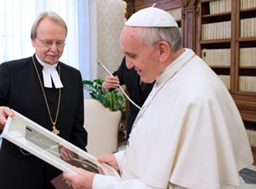„Ezt a tanúságtételt támogathatja és bátoríthatja a fejlődő teológiai párbeszéd az egyházak között” – állapította meg Ferenc pápa. A megigazulás tanáról tizenöt évvel ezelőtt aláírt közös nyilatkozat a kiengesztelődés és az együttműködés újabb gyümölcseit teremheti a lutheránus és a katolikus egyház között. A Finnország és Svédország között folyó evangélikus-katolikus párbeszéd a megigazulásról az egyház életében fontos témákat vet föl a közös nyilatkozat kapcsán. Reméljük, hogy újabb közeledést eredményez a párbeszéd az egyház fogalmáról, mely a Jézus Krisztusban kapott üdvösségünk jele és eszköze – tette hozzá a Szentatya.