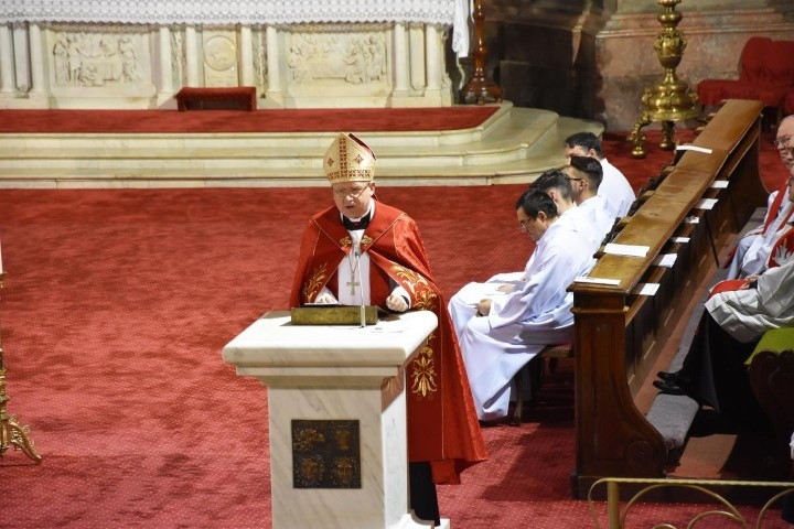 Prédikációjában a főpásztor – utalva a közeledő pápalátogatásra – felelevenítette Szent II. János Pál pápa húsz évvel ezelőtti látogatását, különösen azt a gesztust, amikor az akkori Péter-utód, akit azóta a szentek sorában tisztelünk, megemlékezett mindazokról, akik áldozatokat hoztak a hitükért a kommunizmus legnehezebb éveiben, börtönökben szenvedtek, többen meg is haltak. Húsz évvel ezelőtt két kimagasló személyiség közülük még életben volt: Alexandru Todea bíboros, aki találkozott is a Szentatyával, valamint Boros Béla érsek, aki csak otthoni betegágyáról tudta követni az eseményeket. A pápa akkor megemlékezéseibe és imáiba foglalta a nagyváradi egyházmegye vértanúját is, Boldog Bogdánffy Szilárd püspököt.
