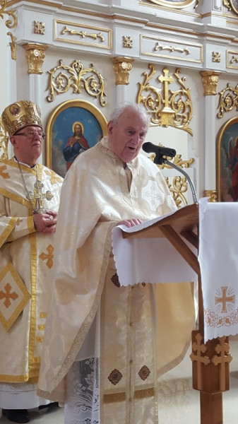 A vasmisés szónok, Fekete András kiemelte a jubiláns görögkatolikus pap feleségének, Máriának áldozatos szerepét, aki nélkül az ünnepelt nem tudta volna ily hatékonyan végrehajtani a 65 évnyi papi élet és pasztorációs munka feladatait.