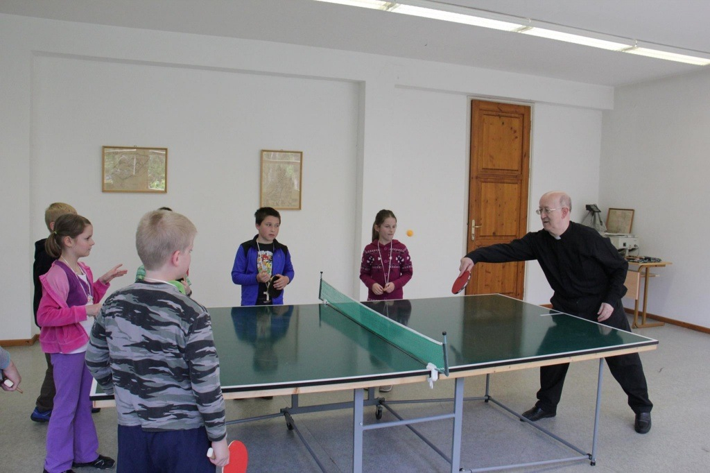 A szentmise után a ministránsok csapatokba osztva a kispapok által szervezett akadályversenyen vettek részt. A különböző településekről érkezett gyerekek a játékos feladatok során ismerkedtek, beszélgettek egymással. Az egyes állomásokon próbára tehették tudásukat és ügyességüket, különösen népszerű volt a kötélhúzás és az ugrálóvár. Nagy öröm volt mind a főpásztor, mind a gyerekek számára, hogy együtt pingpongozhattak.
