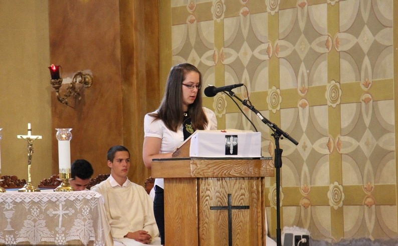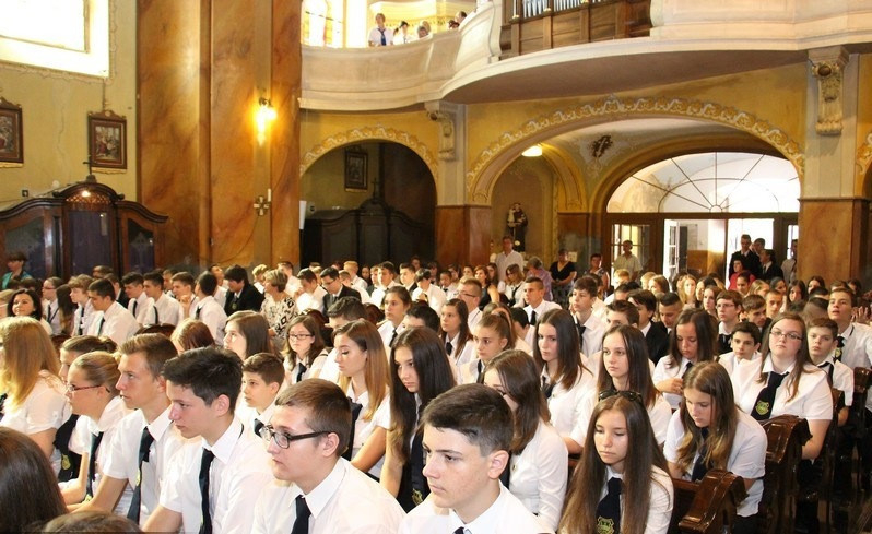 A kilencedikes diákok ünnepélyes esküt tettek, majd átvehették osztályfőnökeiktől az iskola kitűzőjét és az emléklapot. Ezt követően Téglás László igazgató és Finta József plébános köszöntötték a megjelenteket.