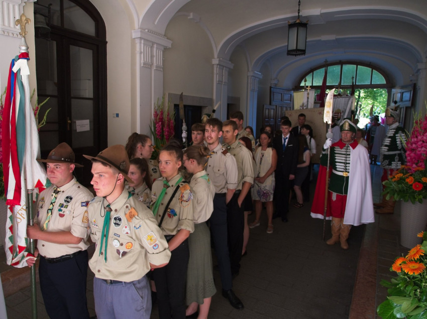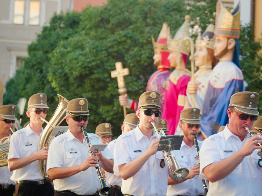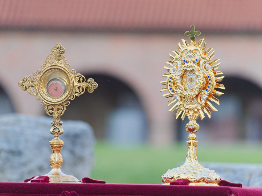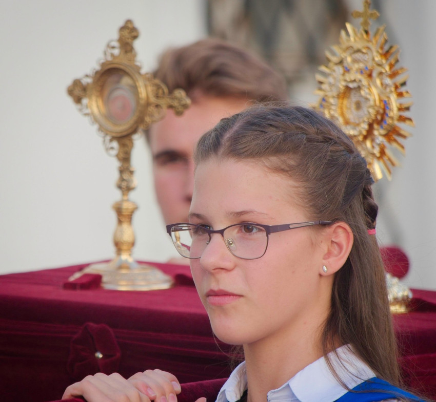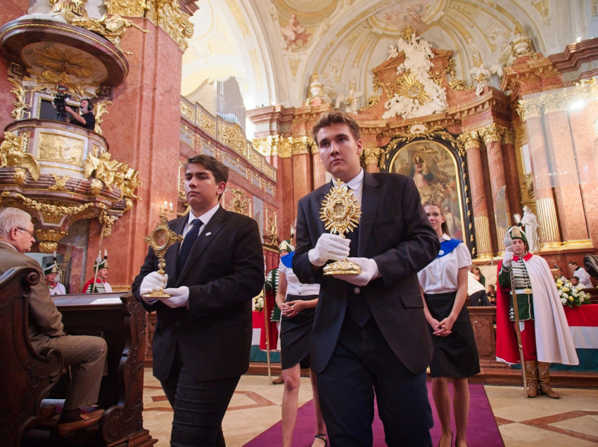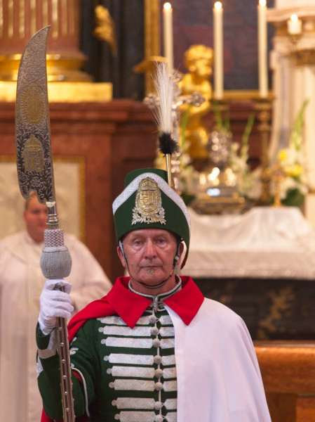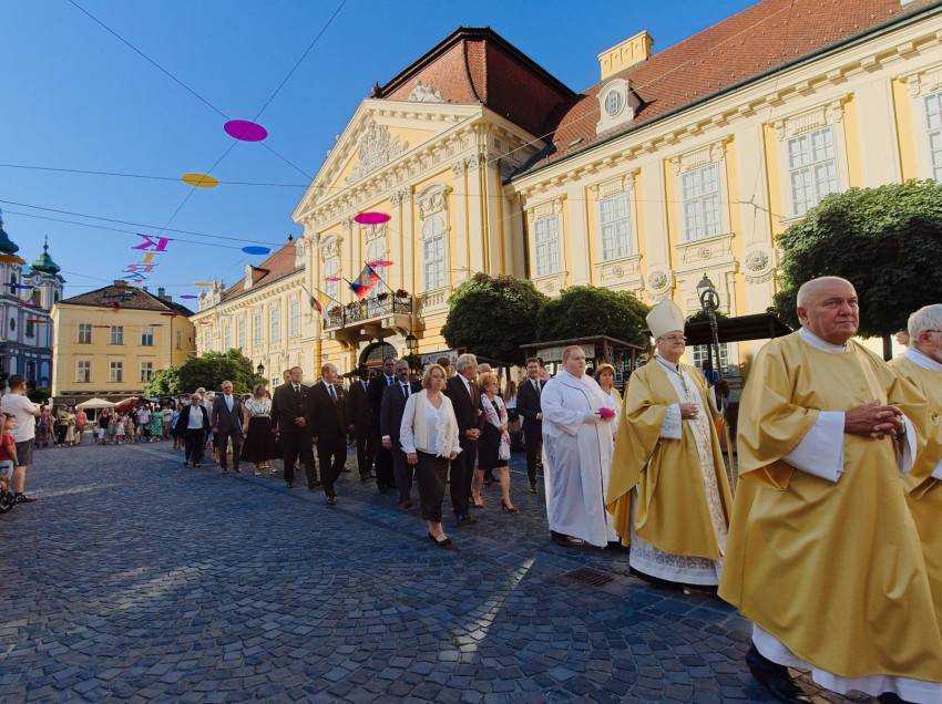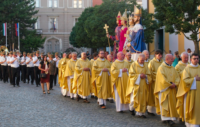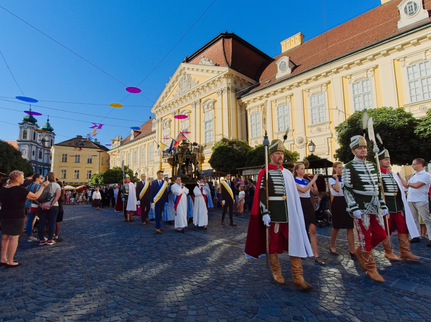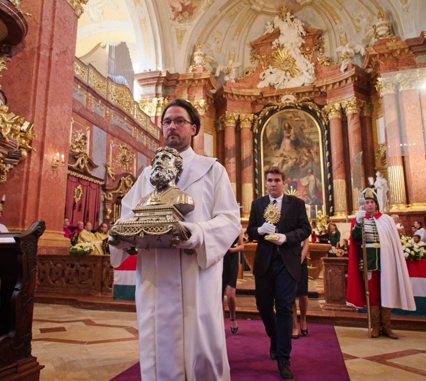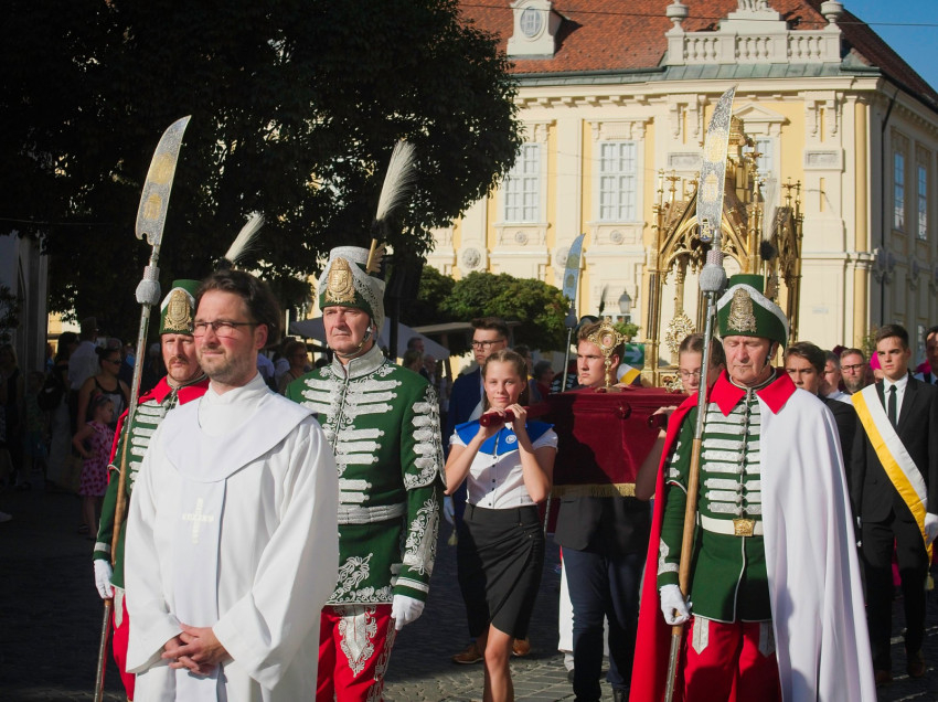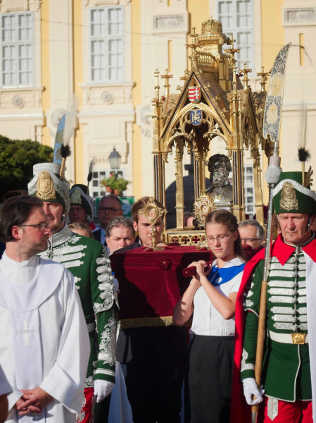 A Szent István-i országfelajánlás emlékét méltón őrizve a Ruff Tamás karnagy vezényelte Székesfehérvári Helyőrségi Zenekar kíséretével az egykori szakrális főváros főterét végigjárva, ünnepi körmenetben vitték a Magyar Szent Család – Szent István, Boldog Gizella és Szent Imre – ereklyéit a püspöki palotából a székesegyházba Ugrits Tamás pasztorális helynök, püspöki irodaigazgató vezetésével. A megjelent papság, köztük Francz Kaspar kanonok, a város cserkészei, katolikus iskolásai, a helyi közéleti vezetők, a közintézmények, társadalmi szervezetek képviselői, a Hagyományőrző Koronaőrök, a Történelmi Vitézi Rend és a lovagrendek tagjai, a rendvédelmi és társadalmi szervezetek képviselői, az oktatási intézmények és egyházközségek küldöttei zászlókkal vonultak végig a menetben, hogy hitvalló módon fejezzék ki a szentek iránti tiszteletüket. A Magyar Szent Család ereklyéit a Szent István király-székesegyház oltárára helyezték el.