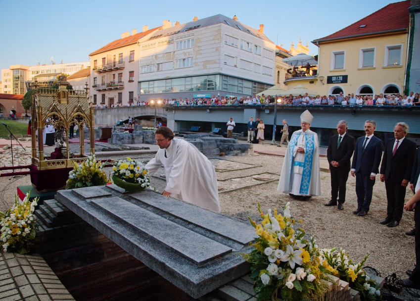 Spányi Antal megyéspüspök arról is beszélt, hogy Szent István megkeresztelkedésétől kezdve komolyan vette a keresztény tanítást, az Egyház útmutatását, és mindig igyekezett felelősen aszerint élni. Így élte életét családjában, ezen az úton járva vezette saját példáján keresztül is őseinket.