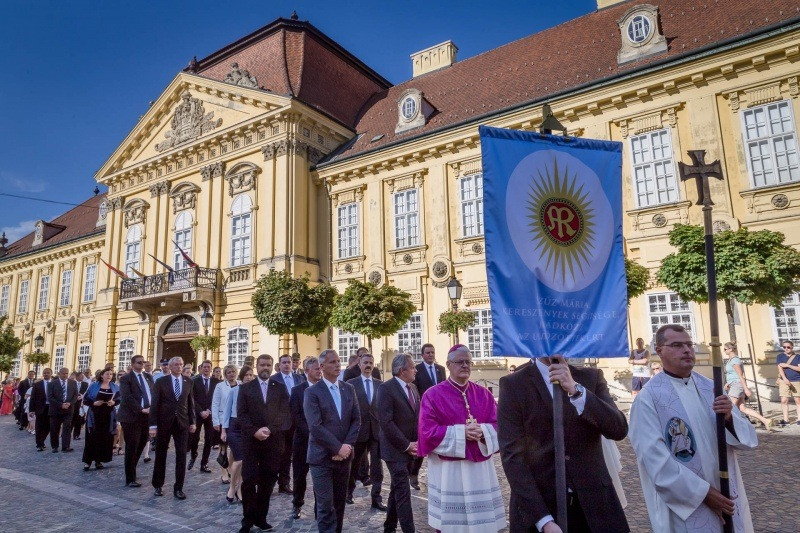 Az imádságos, zenés áhítattal kezdődő szertartáson Spányi Antal megyéspüspök Szent Istvánhoz, a felelős vezetőhöz fohászkodott, akinek nyomdokain járva nemzetünk jelenét és jövőjét, családjainkat, az Egyházat a Mennybe Felvett Szűzanya pártfogásával az irgalmas és szerető Isten gondoskodására bízhatjuk ma is. „Hittel és tiszta szívvel ajánljuk Máriának a magyarokat ma, amikor annyi bizonytalanság van, és annyi veszély fenyegeti Európát, a kereszténységet, az egész világot, amikor elvesztettük a hitünket, de nemcsak az Istenbe vetett hitet, nemcsak az Egyház által tanított hitet, de az emberben, a jövőben, az igazságban, a családban, az értékrendbe vetett hitet is. Nagy szükség van arra, hogy hitet merítsünk és magunkat újra tudatosan, Szent Istvánnal és Magyar Szent Családdal közösséget vállalva Máriának ajánljuk” – fogalmazott a főpásztor.