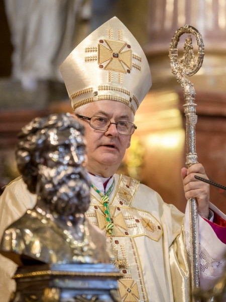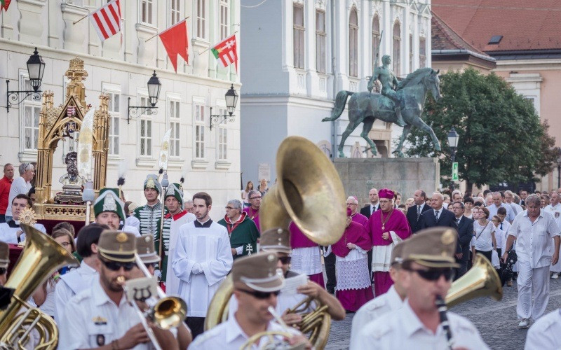A megyéspüspök beszélt a hitük miatt üldözöttekről és a lerombolt iraki templomból származó keresztről, amely mellett az emberek békét, nyugalmat, reményt, elcsendesedést találhattak. „Számunkra ez a kereszt a felelősség szimbóluma – mondta a főpásztor –, amely mindig emlékeztessen bennünket a Szent István-i gesztusra, arra hogy vállaljuk a felelősséget, amely ránk hárul. Emlékeztessen a hitre Istenben, az Egyház tanításában; de arra is, hogy valljuk az örök értékeket, higgyünk nemzetünk értékében, a család és a szabadság értékében, a szülőföld értékében, a magyar lélek értékében.”