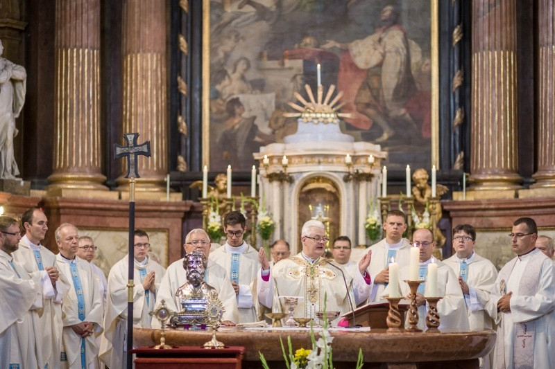 A főpásztor homíliájában kiemelte: nemcsak Mária mennybevételére emlékezünk ezen az ünnepen, hanem arra a gesztusra is, amely Székesfehérvárhoz kötődik. Szent István király, aki hosszú uralkodása alatt folytonosan küzdelmekbe bonyolódott, akinek a megpróbáltatások, keresztek elkísérték egész életét, halála előtt Máriának ajánlott bennünket. „Nem a gyengék gesztusával, az erőtlenek tehetetlenségével, nem eszköztelen kétségbeesésében tette mindezt, hanem a hitben élő ember tudatosságával.”