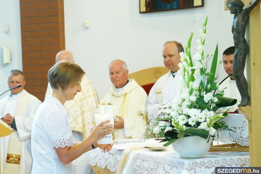 Az ünnepi szentmise főcelebránsa Kovács József általános helynök volt. Urunk színeváltozásának ünnepén a jubiláló nővérrel együtt ünnepelt családja és a lengyel illetve osztrák rendtartomány tagjai, számos pap és a szegedi hívek.