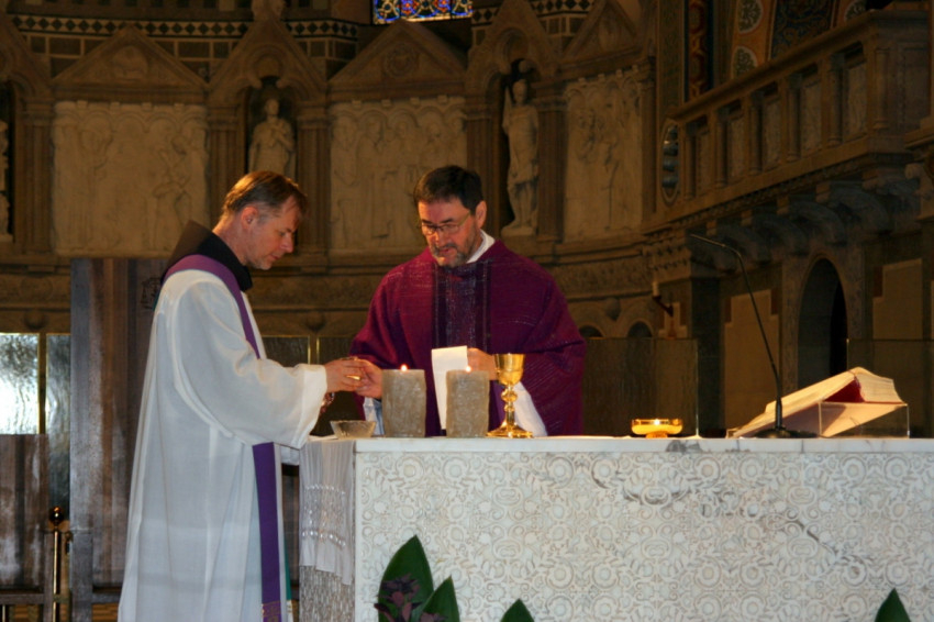 Adrien nővér tavaly ünnepelte fogadalomtételének aranyjubileumát. Az akkor kapott gyertyát Szaniszla nővér mint egykori novíciatárs tartotta kezében a Suscipe éneklése közben.
