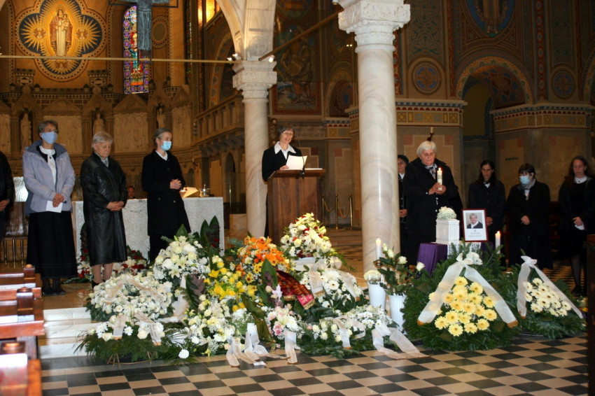 A nővérközösség körülvette a ravatalt, és elénekeltük azt az imádságot, melyet a fiatal nővérek fogadalomtételén, illetve fogadalomújításkor szoktunk a hagyomány szerint énekelni. Ezzel fejeztük ki, hogy hitünk szerint a halál nem más, mint odaadott életünk beteljesedése: egy végső igen kimondása Isten hívására.