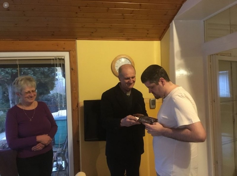 Dobos Roland ajándékként egy imafüzetet kapott, amely védőszentje, Páduai Szent Antal gondolatait tartalmazza, és amibe Veres András megyéspüspök írt köszöntő szavakat.