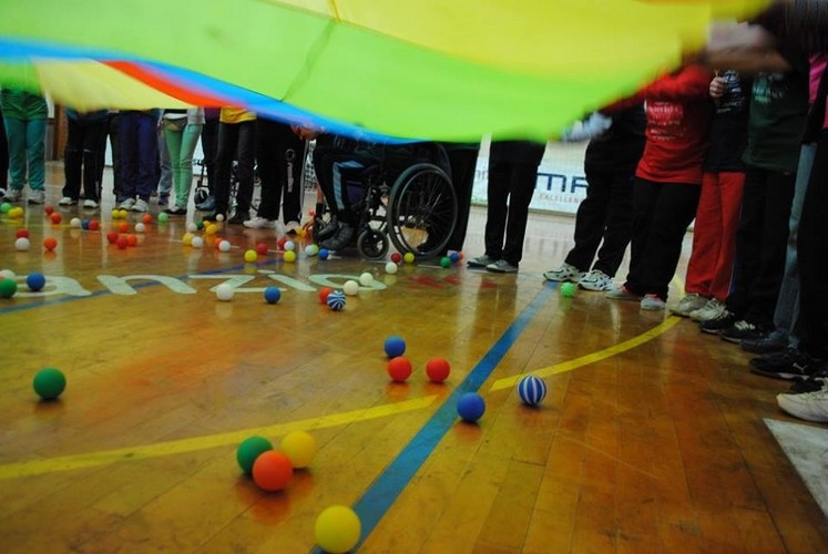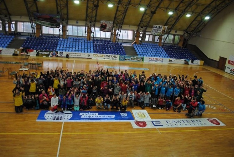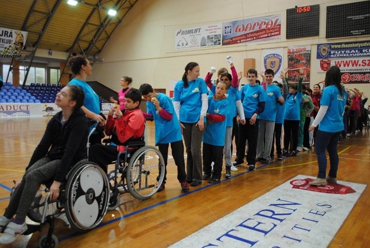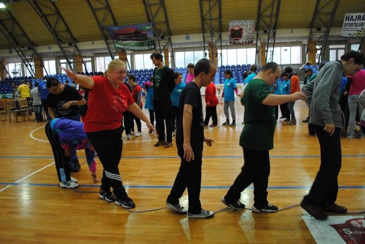 A résztvevők közös bemelegítéssel kezdték az önkéntesek közreműködésével szervezett sportnapot.