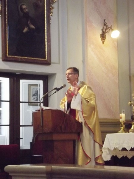 A Magyar Klaudia hittanár által felkészített gondozottaknak Martos Levente Balázs egyetemi tanár, főiskolai prefektus szolgáltatta ki a szentségeket, aki szentbeszédét egy nemrégiben elhangzott koncert felidézésével kezdte. Érdemes megfigyelni – mondta a prefektus –, hogy Csajkovszkij VI., „Patetikus” szimfóniájának kezdése és befejezése is milyen csendes, halk. Ám eközben mennyi minden történik! Egy egész élet pereg le lelki szemeink előtt. Hasonlóképp a nap járása reggeltől estig szintén az ember földi útját juttatja eszünkbe, ezt a hasonlatot pedig a Biblia is gyakran használja.