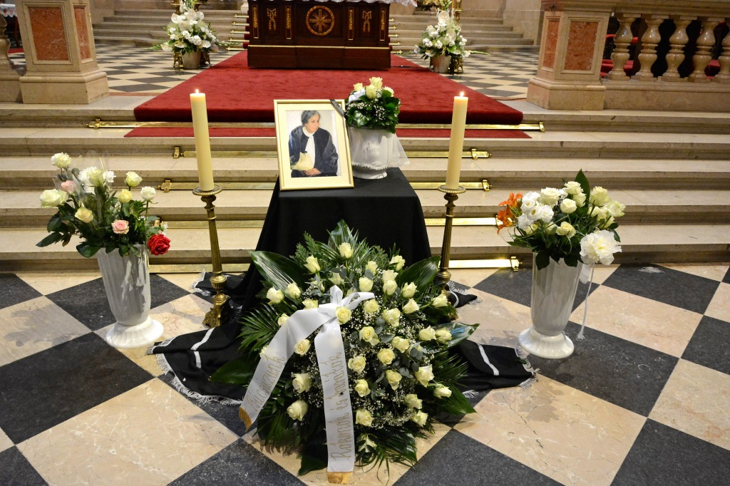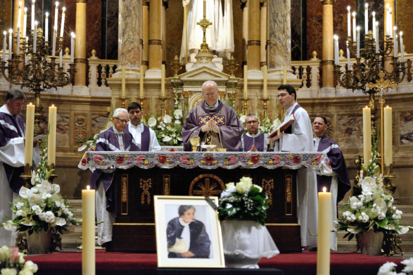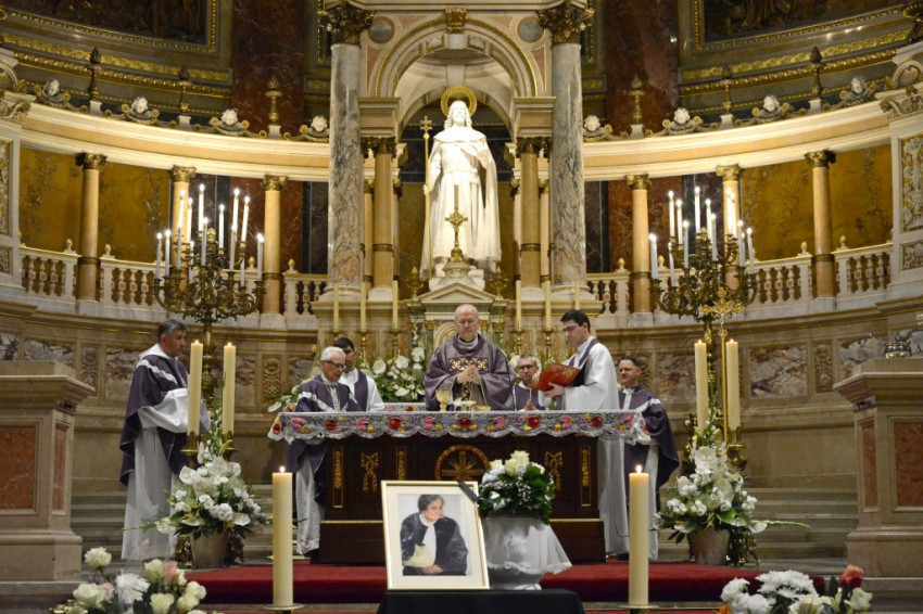 Mária igazi festőként állványokat járva templomok falát is díszítette, ott is maradandót alkotott. Sokszor megragadta egy-egy templom meghittsége, a világ a minket szerető Isten világa, amelyet otthonként alkotott meg számunkra. Ez sugárzik a részletekben, ez az, ami ránk maradt világos, tiszta, erős üzenetként. Ennek beteljesedését kérjük Istentől Mária számára, hogy az örök boldogságban szerető, meghitt otthonra leljen – fejezte be szentbeszédét Erdő Péter bíboros.