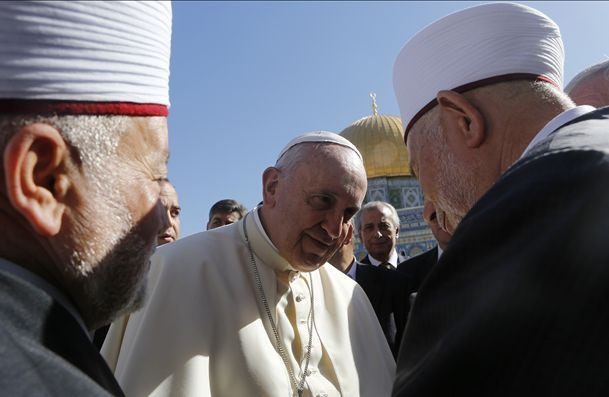 Ferenc pápa elődei nyomában, különösképpen VI. Pált követve, aki 50 évvel ezelőtt látogatott a Szentföldre, vágyott arra, hogy zarándokként meglátogathassa ezt a helyet, amely megtapasztalta Jézus Krisztus földi jelenlétét. „De ez az én zarándoklatom – mondta a Szentatya – nem lenne teljes, ha nem foglalná magába a találkozásokat is azokkal a személyekkel és közösségekkel, akik ezen a földön élnek, és ezért különösképpen örvendek a veletek való találkozásnak, muzulmán hívek, kedves testvérek. Ebben a pillanatban Ábrahám személyére gondolok, aki zarándokként jött erre a földre. Muzulmánok, keresztények és zsidók elismerik Ábrahámot, még ha mindnyájan más módon is, mint egy atyát a hitben és egy nagy követendő példaképet. Zarándokká vált, elhagyva saját népét, saját házát, hogy vállalkozzon arra a lelki kalandra, amelyre Isten hívta őt.”