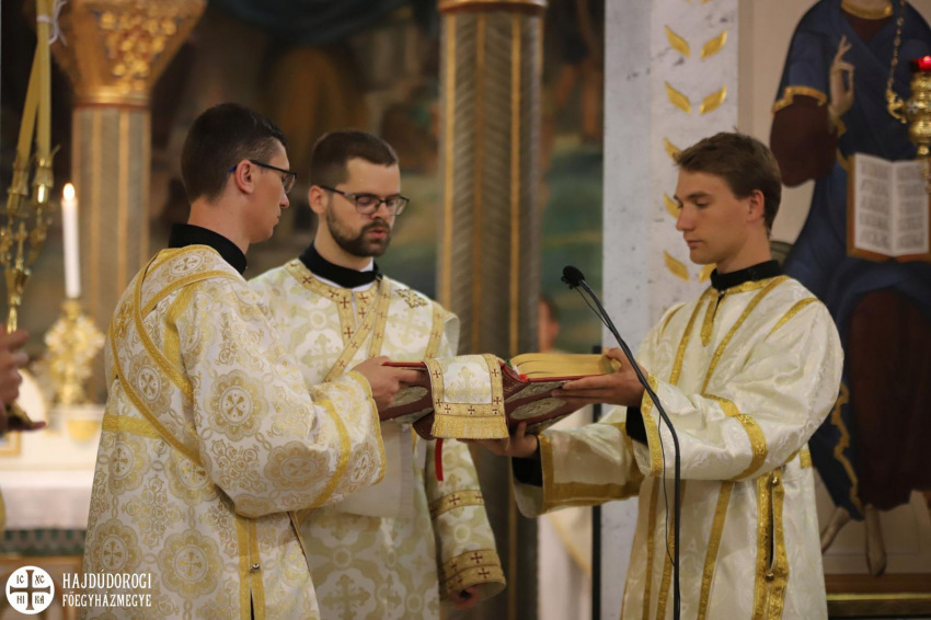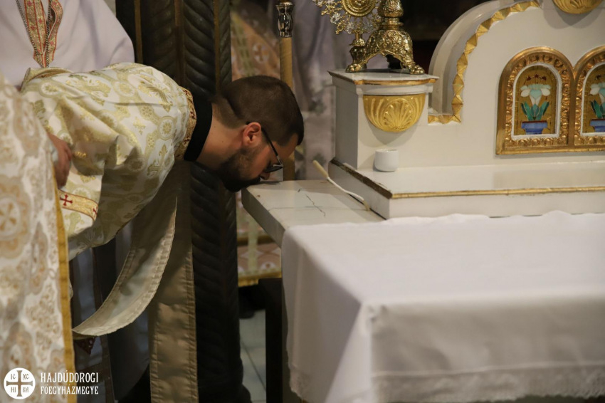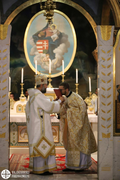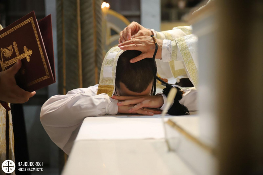 Közben a püspök elmondja azt az imádságot, amiben az egész közösséget szólítja fel, hogy közösen imádkozzon az ifjúért, azért, hogy szálljon rá a Szentlélek kegyelme. Végül egyenként rákerülnek a papi ruházat darabjai – ezek a látható elemek, de ennél sokkal nagyobb dolog történik – hívta fel a figyelmet a metropolita. „Emberi érzékeléssel érzékeljük, de hitünk szerint fogjuk fel ezt az eseményt: új ember születik, új pap lesz az Egyház rendelkezésére, akit az Isten meghívott, kiválasztott.”