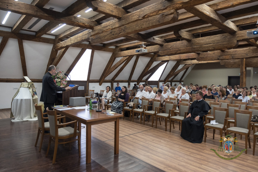 Az ünneplés a Magtár Látogatóközpontban folytatódott, ahol Tóth Lászlóné pedagógiai főmunkatárs köszöntő szavai után a főpásztor szólította meg ismét a katekétákat. Előadásának fókuszában az eucharisztikus nevelés állt, melynek célja a Krisztus életébe történő kapcsolódás és egy folyamatos szeretetkapcsolat létrejöttének elősegítése, hogy ne csak egy-egy emelkedett pillanat legyen a találkozás a Megváltóval.