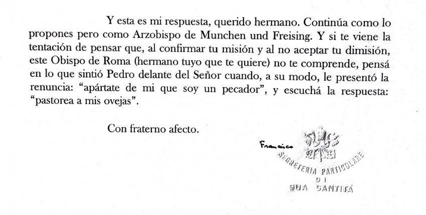 És ez az én válaszom, kedves testvérem: folytasd, ahogy javaslod, de münchen–freisingi érsekként.