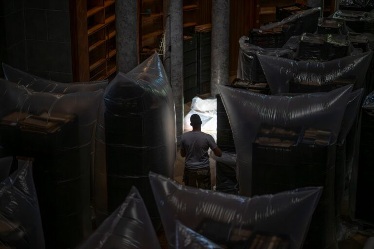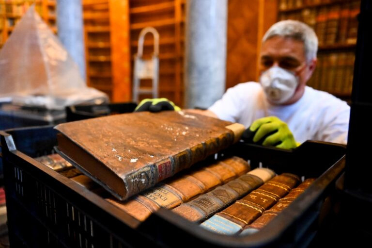 Hajdu Zsófia, a rovarmentesítést végző cég ügyvezetője és munkatársai összesen háromezer ládába pakolták be a nyár folyamán a teremkönyvtár mintegy százezer kötetét. A tornyokba rakott ládákat hatalmas fóliazsákokba csomagolták, amelyekben anoxiás környezetben heteken át pusztultak az enyven és keményítőn élősködő kártevők.