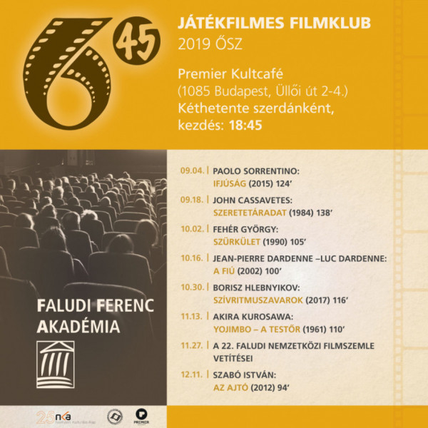 A játékfilmek közül ősszel műsorra kerül Sorrentino idős korról szóló Ifjúság című remeke, valamint Cassavetes késői mesterdarabja, a Szeretetáradat. Keletről Kuroszava 1961-ben készült A testőr és Borisz Hlebnyikov Szívritmuszavarok című 2017-es filmje érkezik, a nyugati alkotók munkái közül pedig a Dardenne fivérek 2002-es, A fiú című filmjét kínálják.