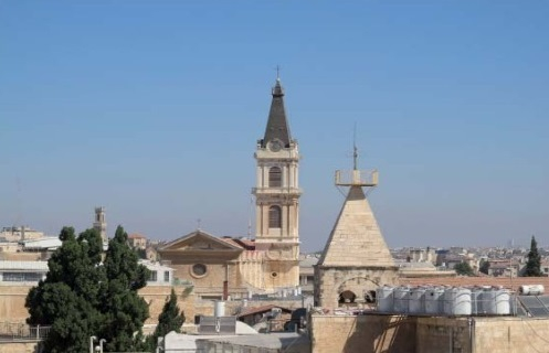 Május 2-án „Jeruzsálemi háztetők” lesz a vetítés címe: felmegyünk néhány háztetőre és toronyba Jeruzsálem Óvárosában, és körülnézünk onnan. Ez amolyan „páholyból” végzett városnézés lesz, de most nem csupán a kényelem jelenti a pluszt. Egyes tornyokba, magaslatokra belépődíj ellenében bárki felmehet (német evangélikus templom, Hurva zsinagóga, Dávid vára, Olajfák hegye). Olyan helyekről is kilátást kapunk most az Óvárosra, amelyek a kolostori jelleg miatt a zarándokok előtt zárva vannak: San Salvatore, Flagellatio kolostor, Maison d’Abraham vendégház, Paulushaus vendégház.