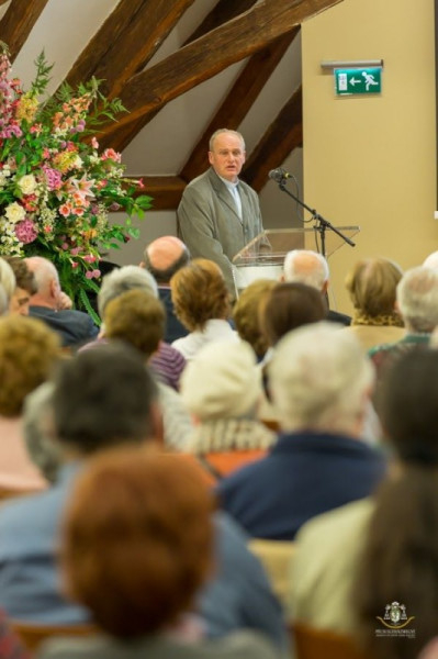A három, egyenként húszperces előadás témája különösen aktuális volt: ugyanis egy nappal korábban, december 8-án kezdődött a katolikus egyházban az irgalmasság szentéve. Takács Gábor bólyi plébános arra világított rá előadásában, pontosan hogyan jelenik meg az irgalmasság az evangéliumban.