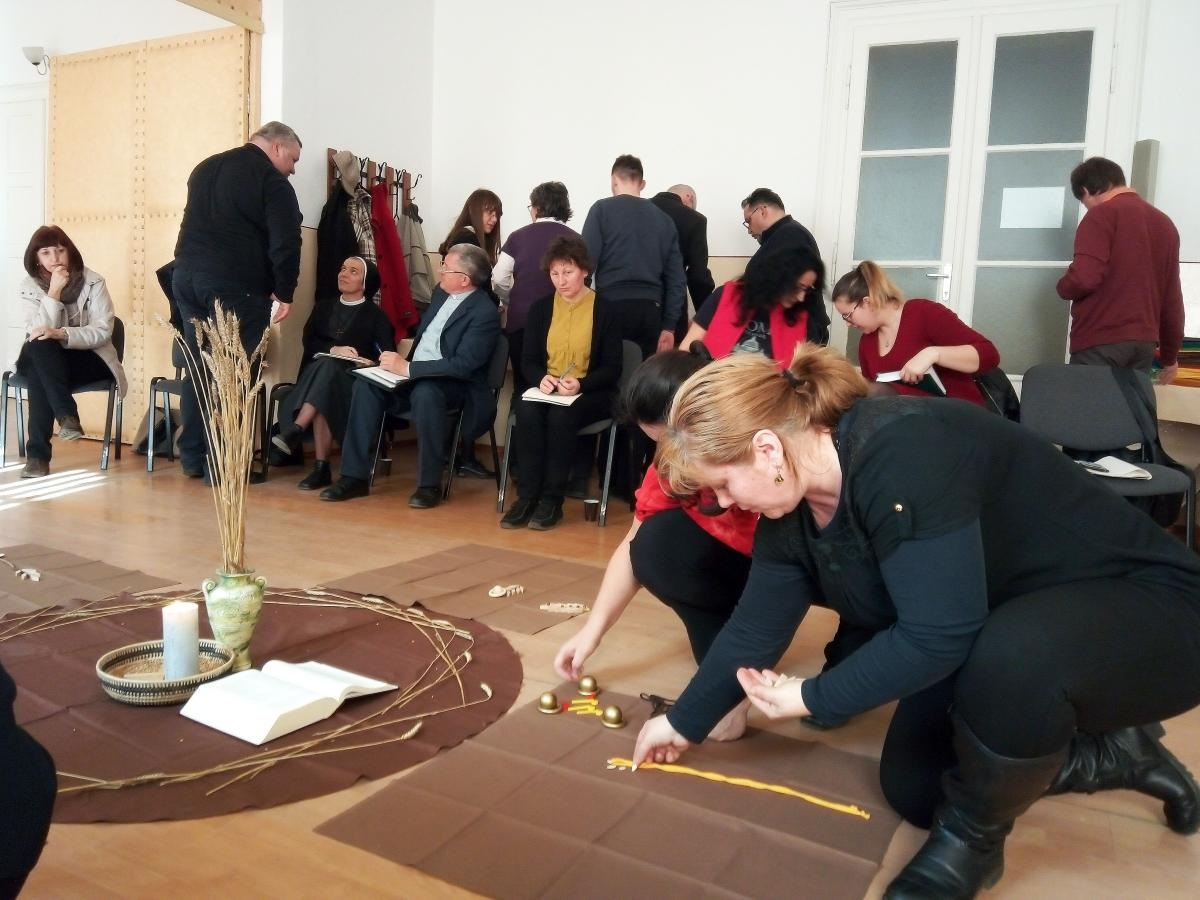 Nagy Enikő M. Kriszta mallersdorfi ferences nővér a Kett-pedagógia segítségével mutatta be az egyéves terv második felét a közel harminc résztvevőnek – papoknak, szerzeteseknek, hitoktatóknak és óvónőknek, akik Arad, Bihar, Kolozs és Szilágy megyéből érkeztek.