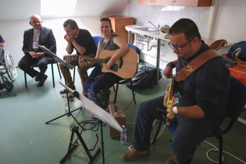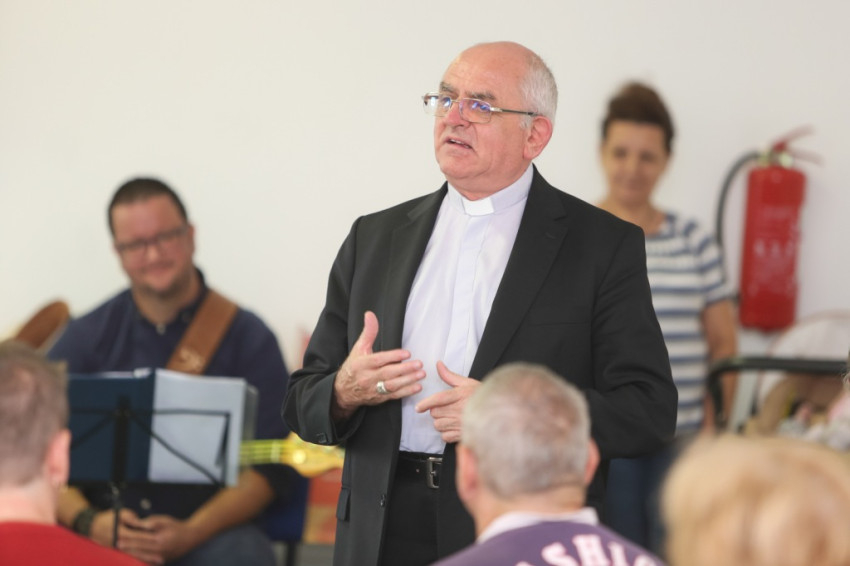 A főpásztort elkísérték az ÉLSZ imacsoport tagjai, akik megajándékozták az otthon lakóit, majd a megyéspüspök osztotta meg gondolatait Jób könyve kapcsán: „Olyan Istenünk van, aki ott van velünk a szenvedésben, aki nem vádol, hanem találkozni akar velünk. Jób felismeri, hogy Isten ott volt vele a gyötrelemben is, s ettől megnyugszik, béke árad a szívébe.