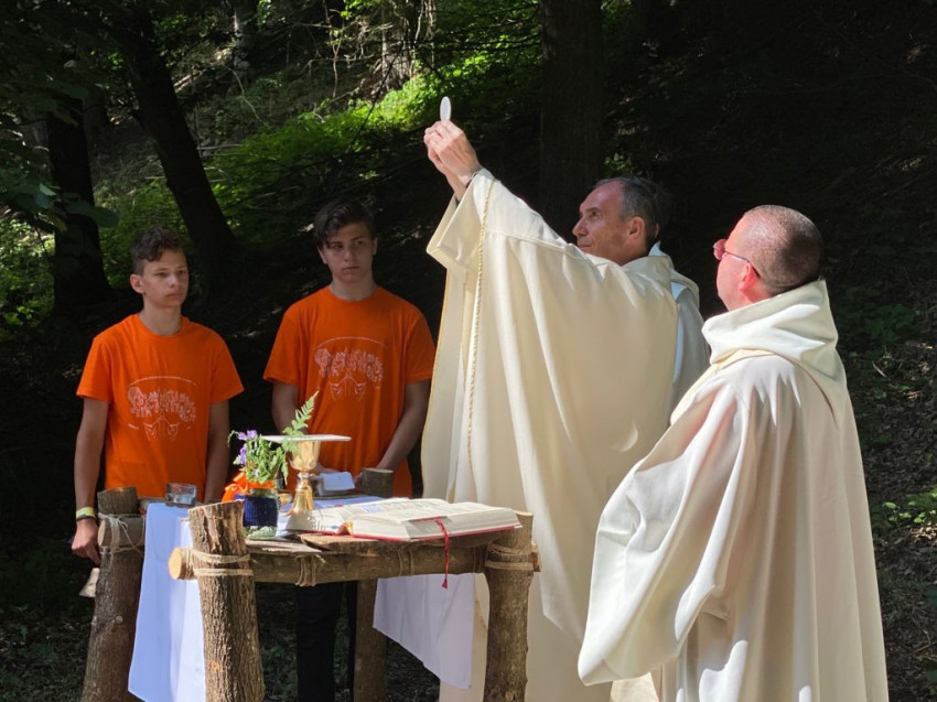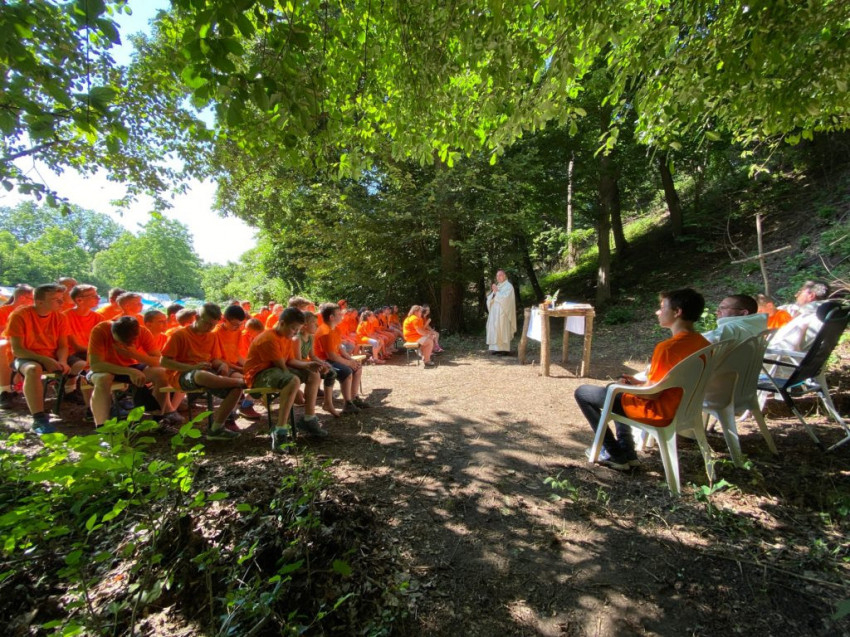 A szentmise homíliájában a veszprémi érsek az örömteli találkozásokat emelte tanítása középpontjába. Arra buzdította a fiatalokat, hogy legyenek olyan találkozásaik az életben, amelyekben megosztják egymással örömeiket. Minden találkozás jó, amelyben jelképesen „odaültethető” Jézus. Ez a kép oly egyszerű és érthető, hogy a táborban részt vevő hétéves kisfiú ugyanúgy megértette, mint a felnőttek.